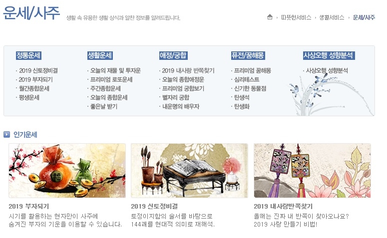 자신의 이름과 생년월일을 입력하시면 바로 운세를 확인할 수 있습니다. 결과는 사람마다 모두 다르게 나타나며 운세, 사주는 말 그대로 점을 치는 것이기 때문에 만약 내가 기대했던 것과 다르게 나오더라도 실망하지 마시고 재미로만 봐주시기 바랍니다.