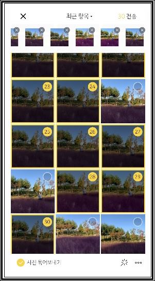 예전에는 최대 30장씩 묶어서 보낼 수 있었는데요. 지금은 최대로 보낼 수 있는 사진 갯수가 많이 늘어났어요. 때문에 50장의 사진을 보낼 때 30장, 20장 씩 따로 따로 보내지 않아도 된다는 말이죠.