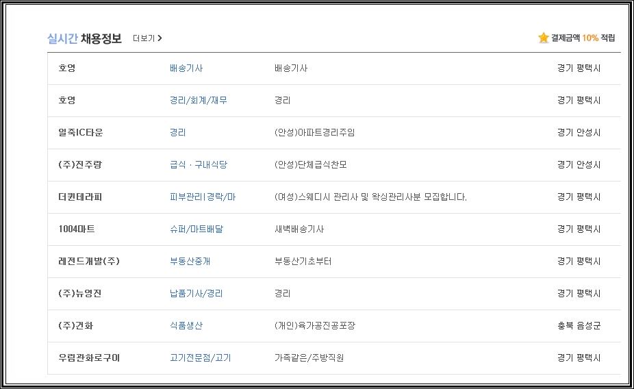 평택에서 일자리를 구하는 곳들, 그리고 평택 곳곳에서 일어나는 행사들. 모두 확인할 수 있습니다. 언제든지 인터넷을 통해 쉽게 구인구직 할 수 있으니까요. 원하시는 일자리 만나시기 바라며 저는 이만 마치겠습니다.