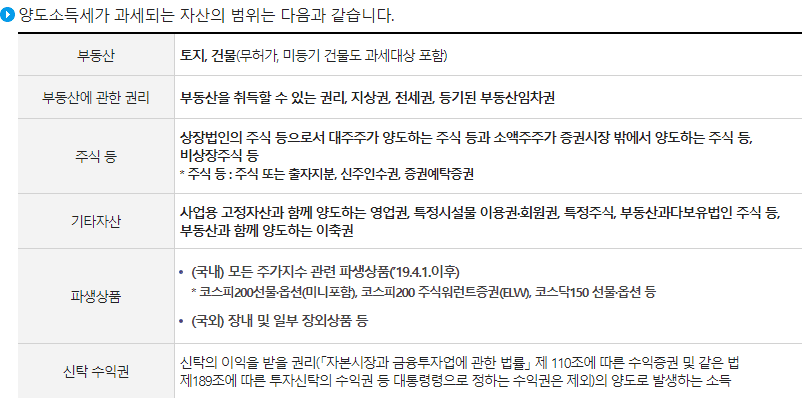 양도소득세란 내가 가지고 있는 토지, 건물, 부동산, 주식 등의 소득을 양도 및 분양권과 같이 부동산에 관한 권리를 양도함에 있어서 발생하는 이익을 과세대상으로 부과하는 세금입니다. 양도소득세 과세되는 자산의 범위로는 부동산[토지, 건물] 부동산에 관한 권리 [부동산을 취득할 수 있는 권리, 지상권, 전세권, 등기된 부동산임차권] 주식 등 금융자산 [상장법인의 주식 으로 대주주가 양도하는 주식과 소액주주가 증권시장 밖에서 양도하는 주식들 및 비상장주식들입니다.] 그외 기타자산들로는 사업용고정자산과 함께 양도하는 영업권, 특정시설물 이용권, 회원권, 특정주식, 부동산 고다보유법인, 주식, 부동산과 같이 양도하는 이촉권 및 파생상품들이 있습니다. 이것을 양도할때 발생하는 세금을 부과해야하는 것이 양도소득세 납부기한 입니다.