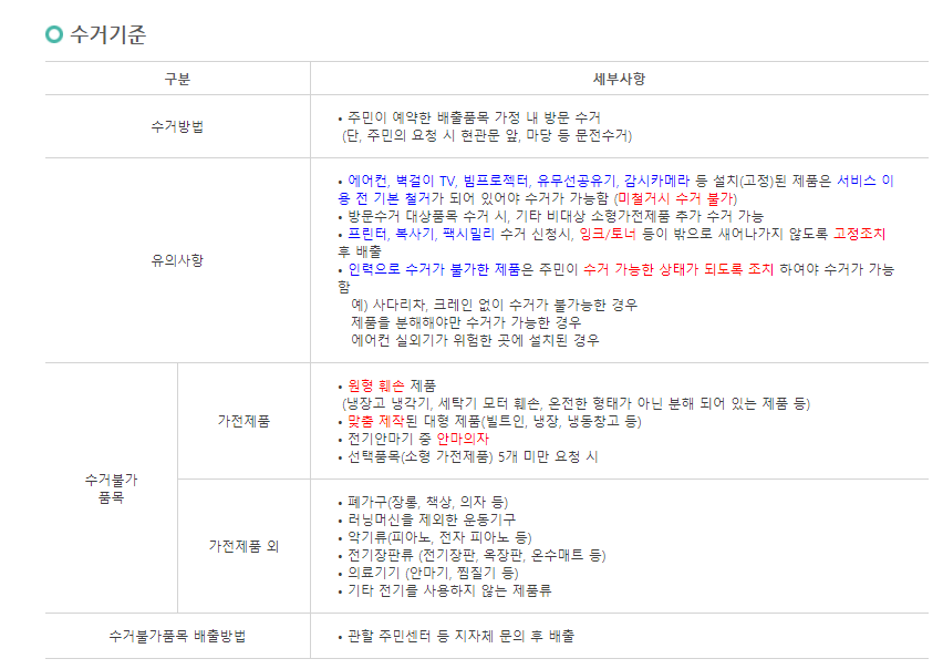 방법은 포탈에서 폐가전제품 배출예약시스템 이라고 검색하면 해당 사이트가 나옵니다. 전국어디든지 이용이 가능한 사이트 이며 앱 및 모바일을 통해서도 등록이 가능한 서비스 입니다. 콜센터 운영시간으로는 평일 08 ~ 18시까지 이며 휴무일은 공무원 휴일은 전부 쉰다고 생각하시면 됩니다. 수거차량은 콜센터와 동일한 운영시간이며 휴무는 토요일 빼고 모든 휴일들은 쉽니다. 수거 품목으로는 단일수거, 세트품목, 다량배출품목이 있으며 수거를 진행할 때 큰 가전제품은 1개면 되지만 작은 가전제품 휴대폰, 마우스, 키보드, 모니터 같은 것들은 최소 3개 이상은 수거 품목에 등록해야 수거를 해간다고 합니다. 좀더 자세한 내용은 사이트를 통해서 진행하시기 바랍니다. 그리고 저도 이용을 해보았는데 수거 등록하고 수거날 밖에 미리 내놓으면 알아서 수거해갑니다. 물론 잘 정리해서 내놔야 합니다.