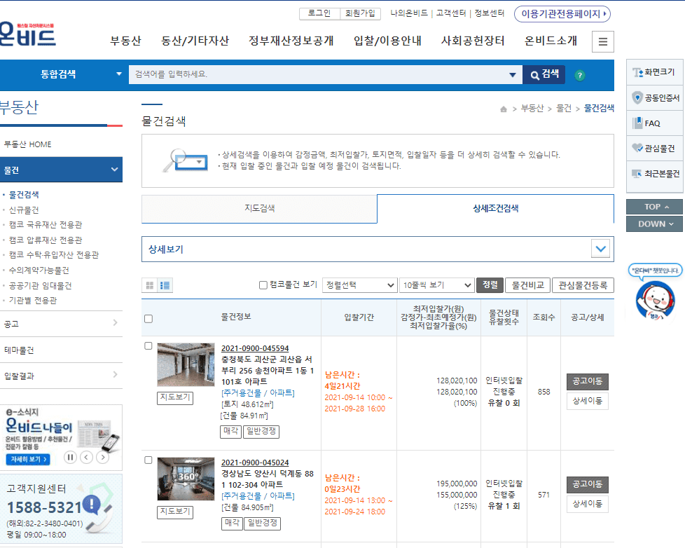 위에 간단하게 설명드린 온비드 사이트에서 공매물건을 찾는 방법으로는 위에 보이시는 이미지는 온비드에 접속하시면 가장 메인에 보이는 화면입니다. 아파트, 자동차, 임야, 주택 등에 가까이 가면 클릭할 수 있도록 나옵니다. 그리고 그중에 나와 관련된 내가 공매물건 찾고자 하는 카테고리를 선택하시면 해당 공매정보들로 바로 이동을 할 수 있게 됩니다. 또 조회된 공매물건들은 일반적 최신순으로 나열이 되있고 상세 정보들은 내가 검색하는 행위에 따라 결과가 달라지는 부분이 있습니다. 그렇게 공매물건을 찾게 되면 상세 검색으로 정보를 열람하실 수 있습니다. 그리고 공매물건을 조회하시면 상세조건 검색에서 [입찰기간, 물건정보, 감정가, 물건상태, 조회수, 공고/상세 상태]에 대한 정보들이 나오게 됩니다. 온비드 공매물건 조회방법으로 아파트, 자동차에 대한 공무물건 정보를 확인하시려면 해당 방법으로 진행 하시고 현재 진행중인 자동차, 아파트 공매물건을 직접 확인하여 입찰을 진행하실 수 있습니다. 제조사 등의 기본정보들은 해당 물건의 보관되있는 소재지 및 장소등을 알 수 있으십니다. 또 자동차 공매물건은 성능기록부의 일부분으로 정비유무등을 간략히 제공할 수 있다고 합니다.